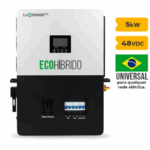 Projetado para o mercado brasileiro o ECO-HÍBRIDO 5000 BR combina tecnologia avançada, design compacto e instalação simplificada, garantindo uma transição suave e automática entre as fontes de energia — rede, solar e bateria — em menos de 15 milissegundos, proporcionando alimentação contínua e estável. Com suporte para até 16 unidades em paralelo, o sistema é altamente escalável e adequado tanto para pequenas residências quanto para grandes instalações. Possui ainda porta dedicada para gerador e recursos de gerenciamento de carga inteligente, assegurando performance otimizada e maior vida útil do sistema.